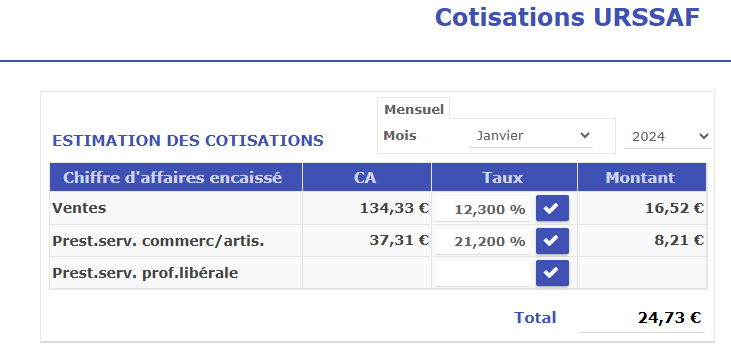Ventilation automatique : Saisissez vos ventes et prestations, le logiciel s’occupe de les répartir selon les bons taux de cotisations.